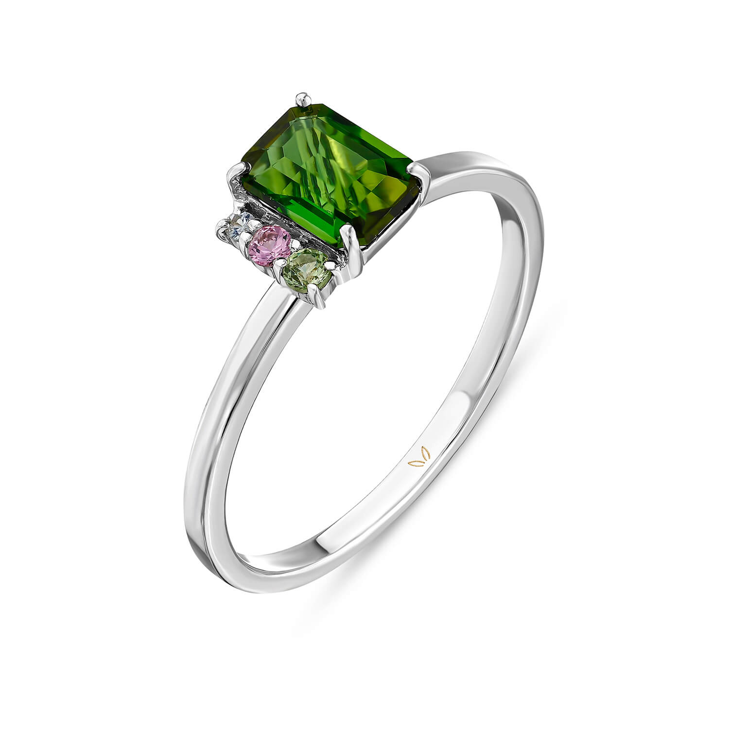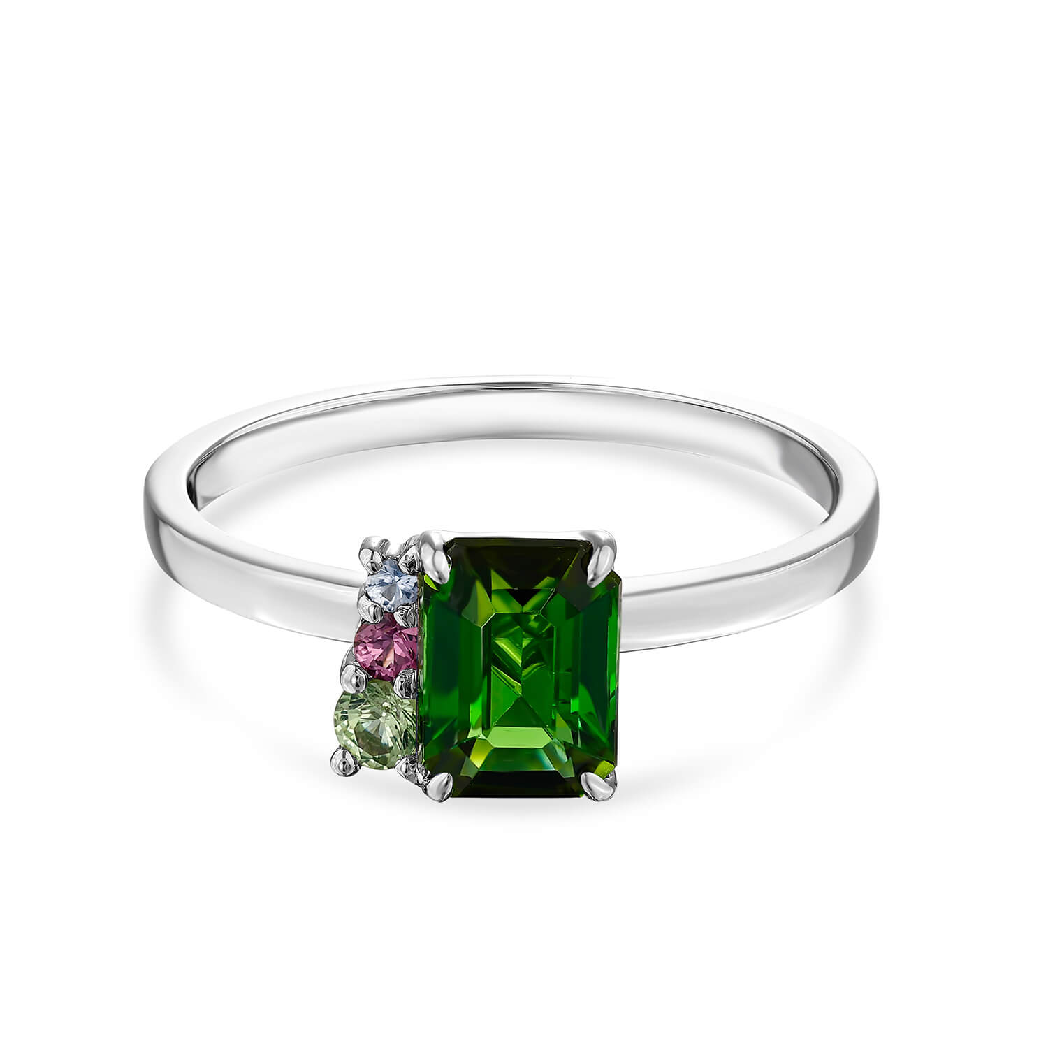 925 silver | 1.40gram | Polychrome Green Tourmaline 0.81ct | Multi Color Side Sapphires 0.08ct