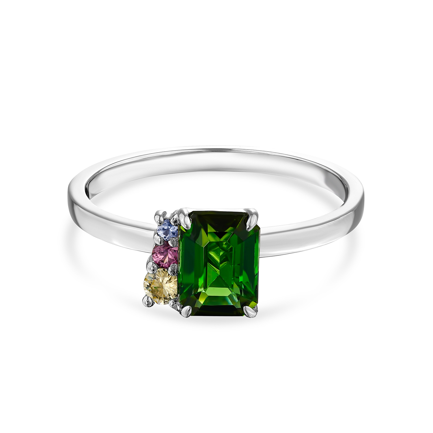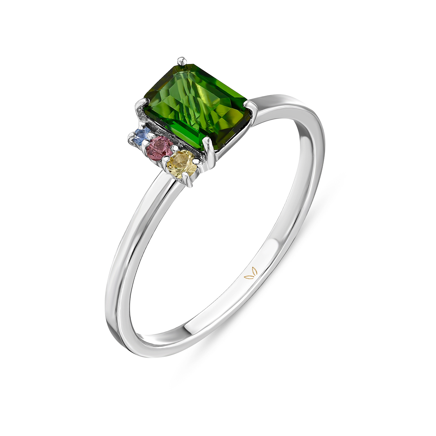925 silver | 1.82gram | Polychrome Green Tourmaline 0.89ct | Multi Color Side Sapphires 0.07ct