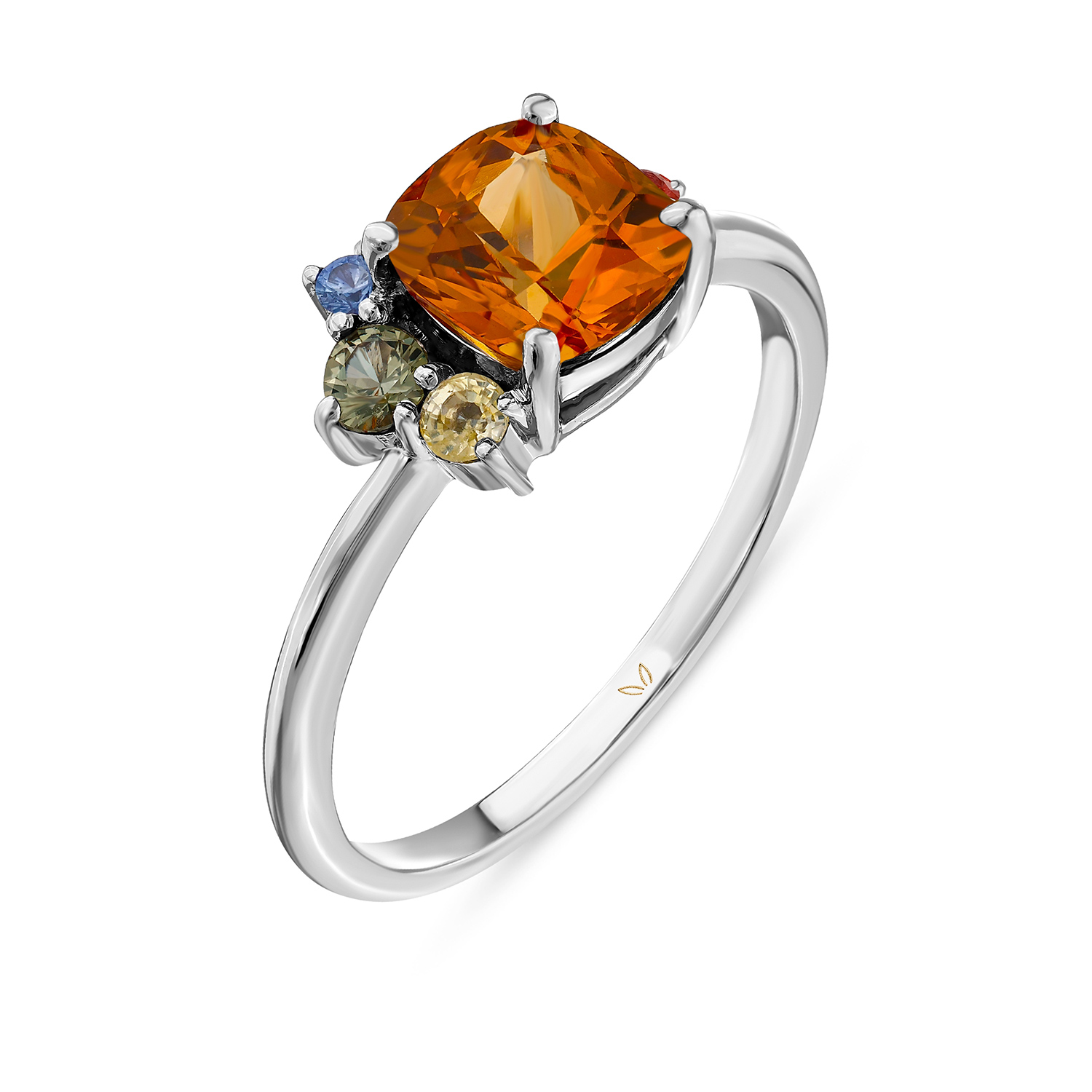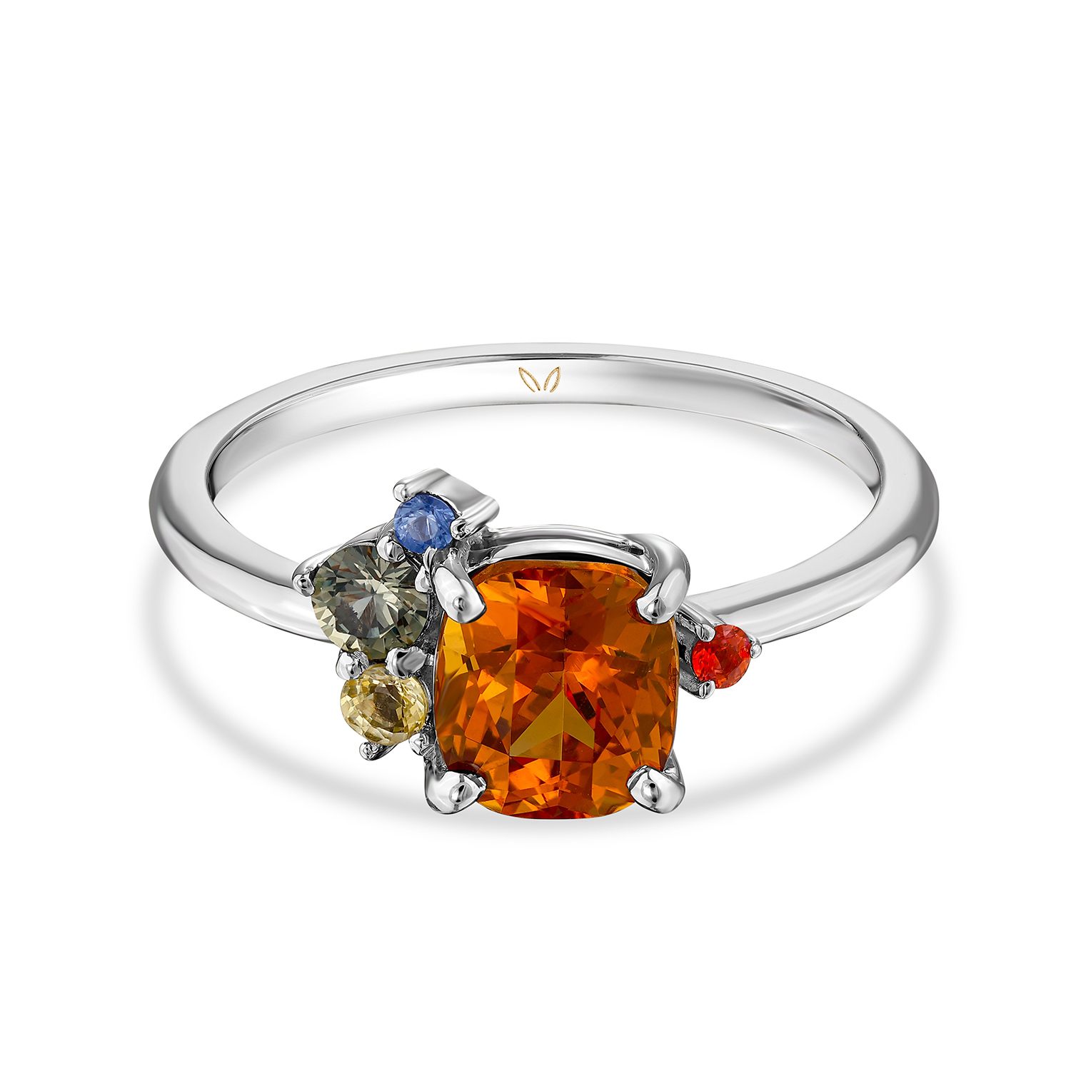 14k white gold | 2.59gram | Spessartine Garnet 1.64ct | Multi Color Side Sapphires 0.15ct