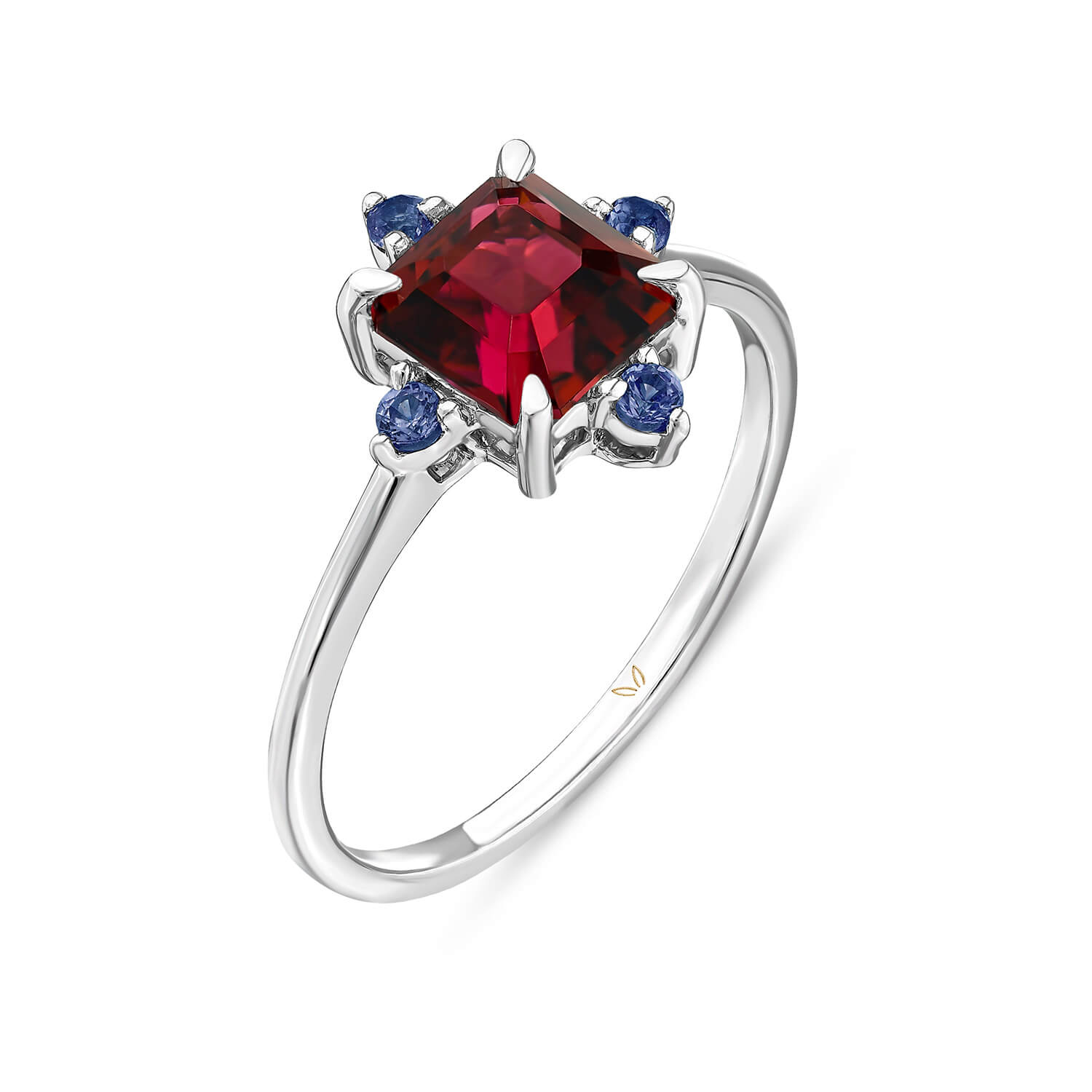 CHERRY TOURMALINE AND BLUE SAPPHIRE GOLD RING