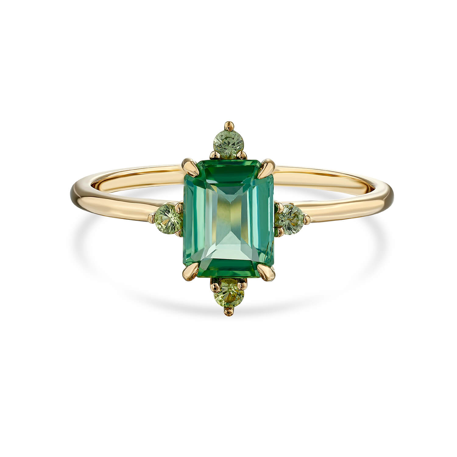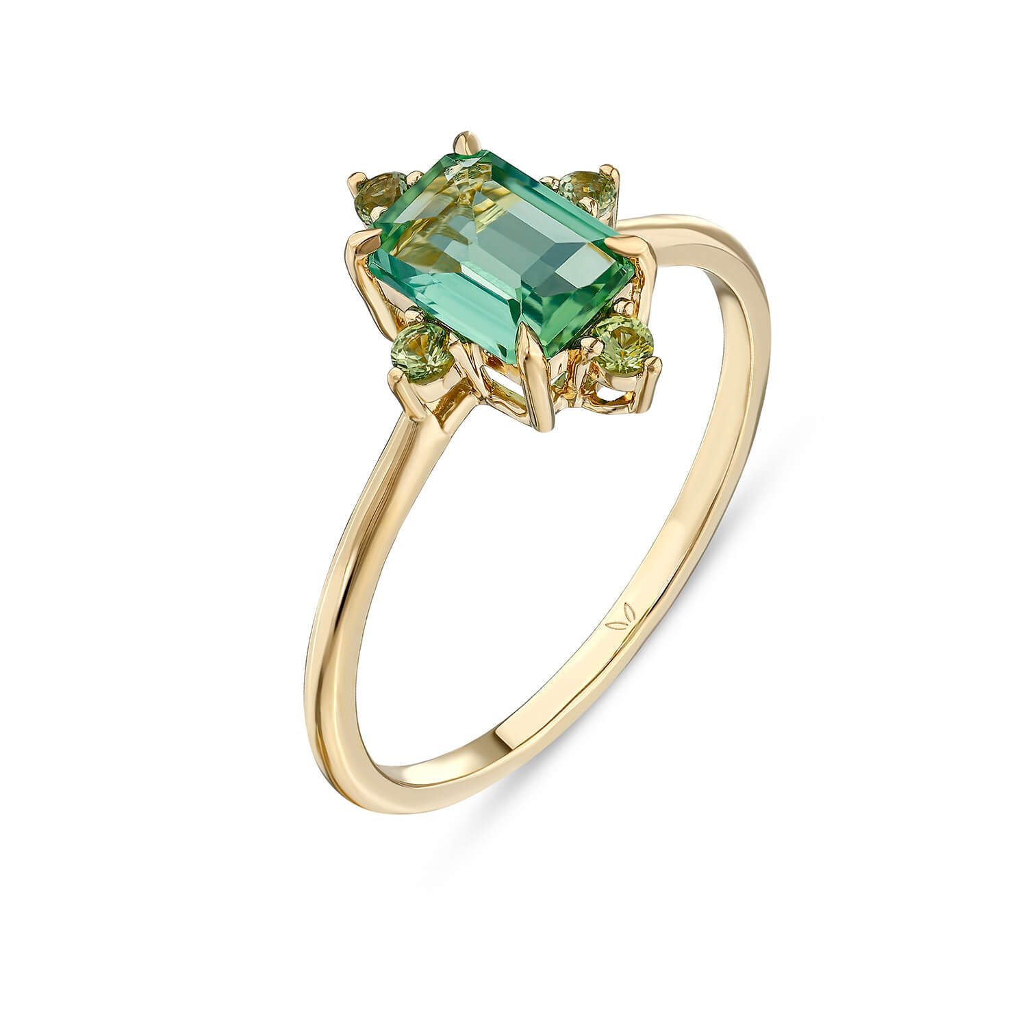Green Tourmaline and Bi-Color Sapphire Gold Ring