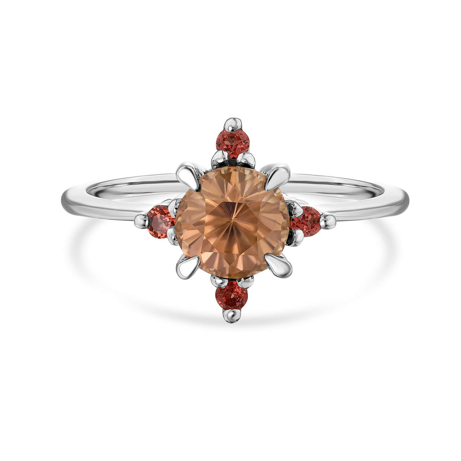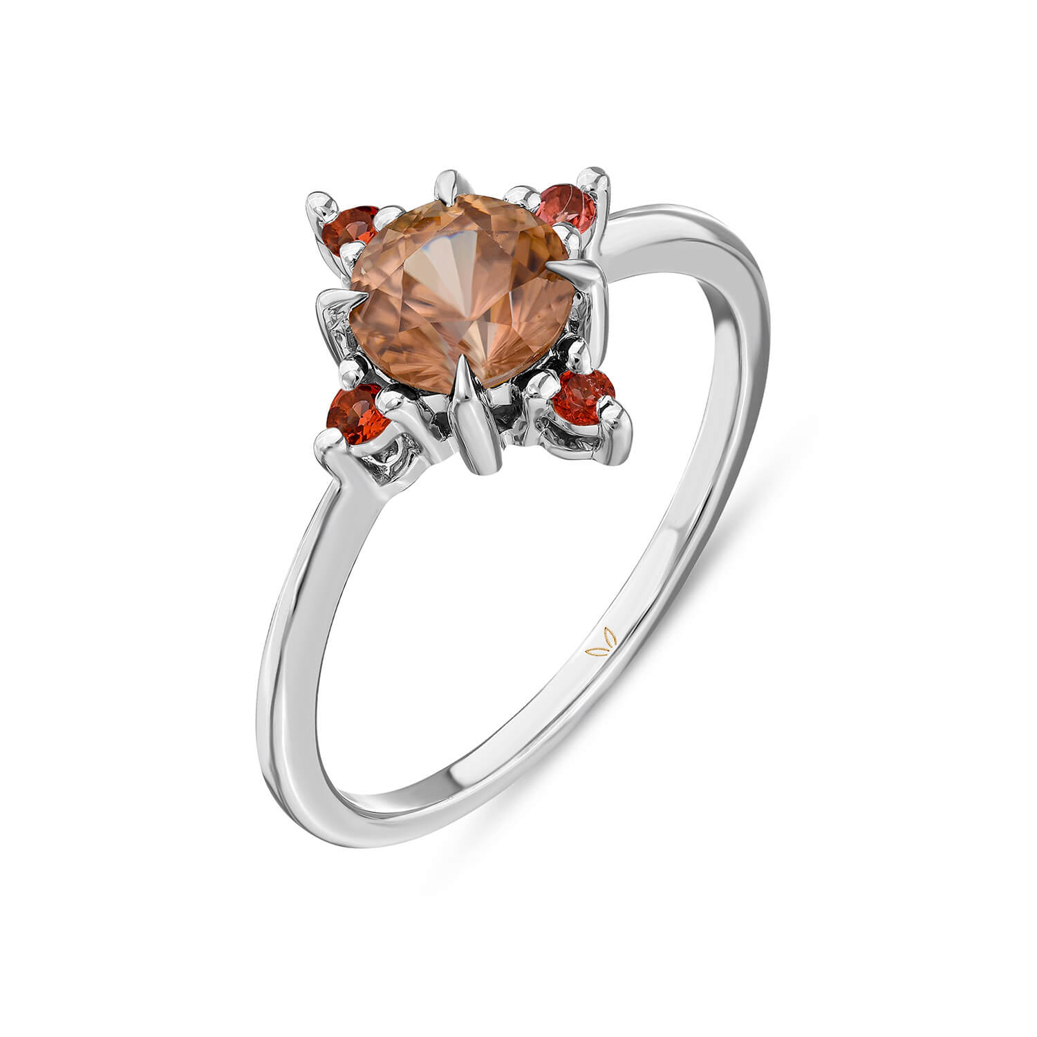 PEACH ZIRCON AND ORANGE SAPPHIRE SILVER RING