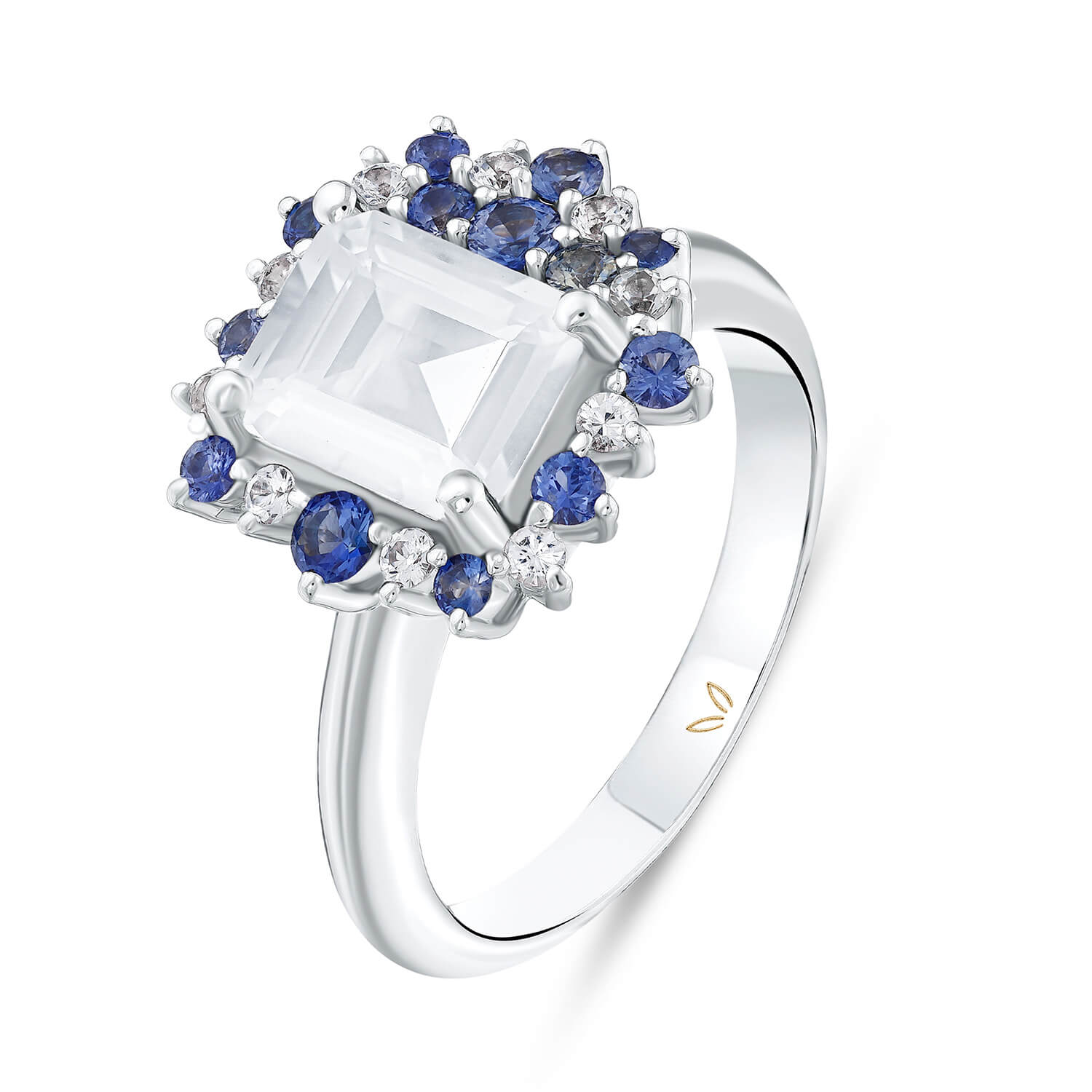 Moonstone Blue White Sapphire Gold Ring